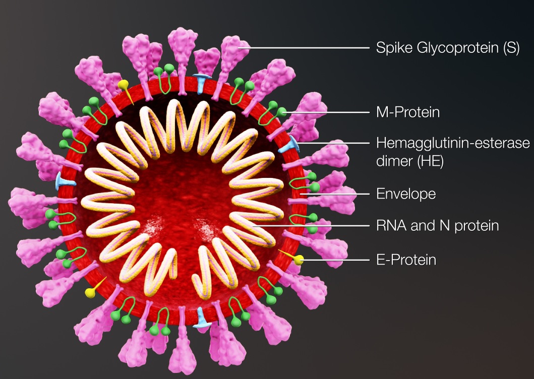 کروناویروس دارای یک RNA ژنومی شامل 29891 نوکلئوتید بوده که پروتئین‌های (S (Spike) ،E (Envelop ، (M (Membrane و (N (Nucleocapsid را کد می‌نماید. این چهار پروتئین، پروتئین‌های ساختاری بوده و برای ساختن ذرات ویروسی مورد نیاز هستند.